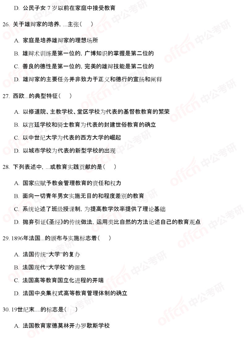 2020考研,311教育学基础综合试题单选题6(中公考研版)