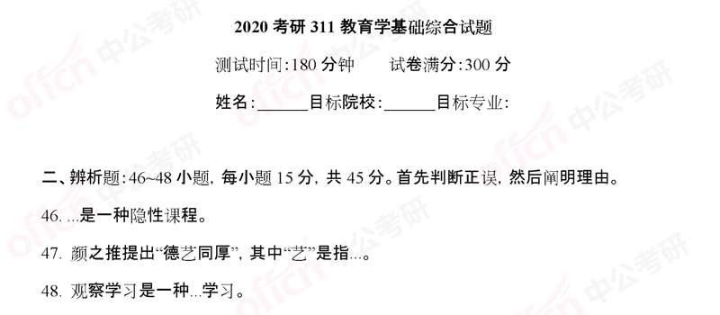 2020考研311教育学基础综合试题辨析题原文(中公考研版)