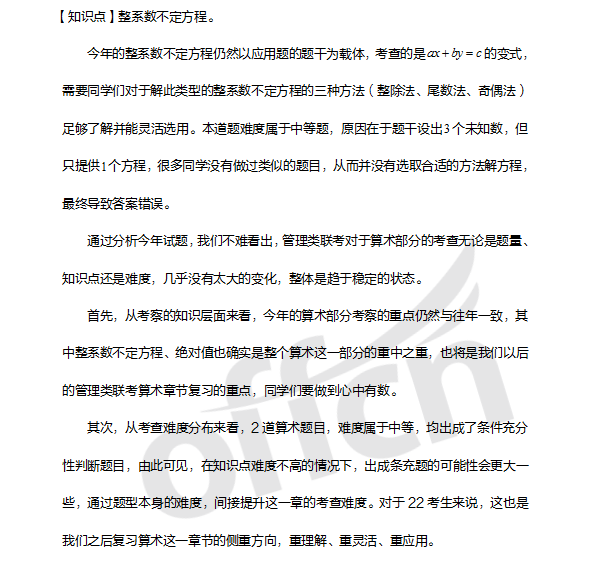 根据管理类联考初等数学的大纲,我们整个知识体系分为以下五部分:算术、代数、数据分析、几何及应用题。本篇主要带大家分析一下算术部分的难度和考点。