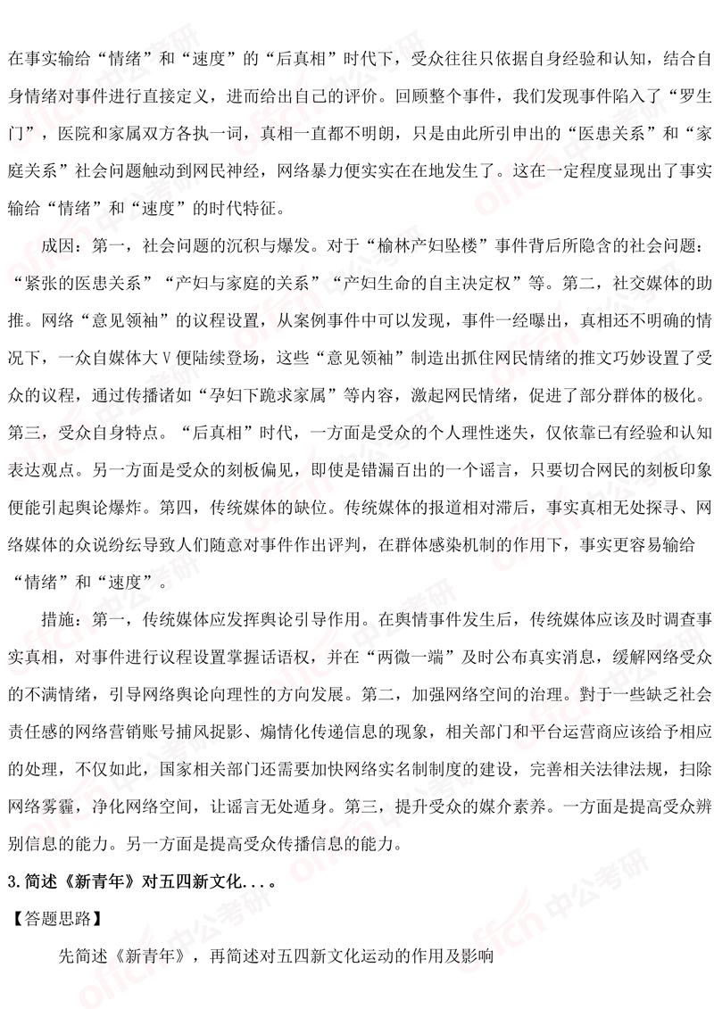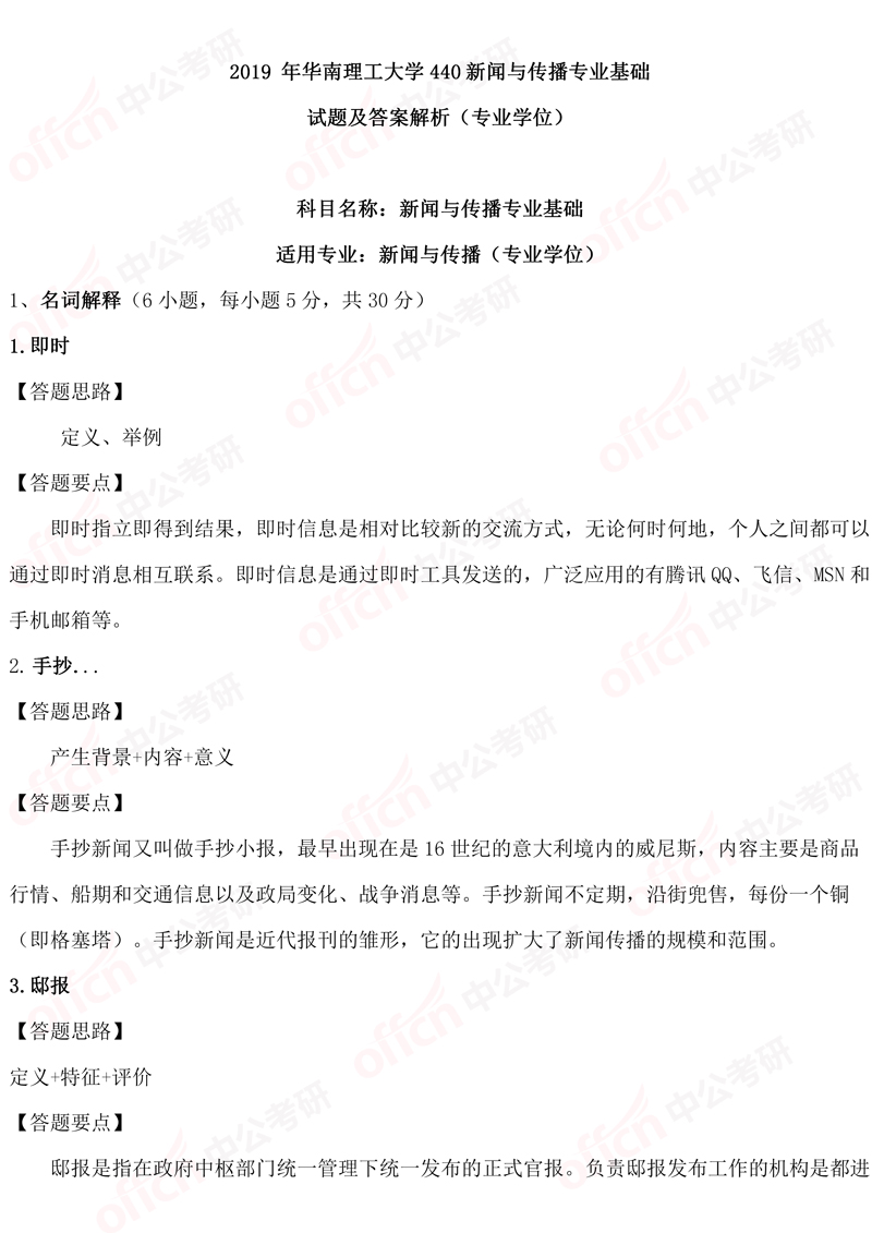 以上是四川中公考研小编为您整理的“2019-华南理工大学440新闻与传播职业基础-参考答案”,预祝每位考生取得好成绩,更多考研常识相关内容尽在四川中公考研真题解析频道!为了考生们更好的复习,中公考研为广大学子推出乐学面授课、VIP一对一等系列备考课程,针对每一个科目要点进行深入的指导分析,欢迎各位考生了解咨询。同时,中公考研一直为大家推出考研直播课堂,足不出户就可以边听课边学习,为大家的考研梦想助力!