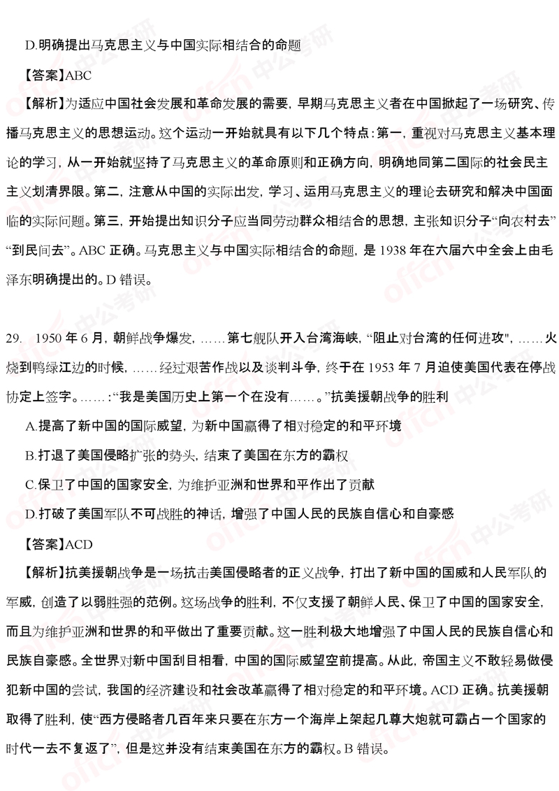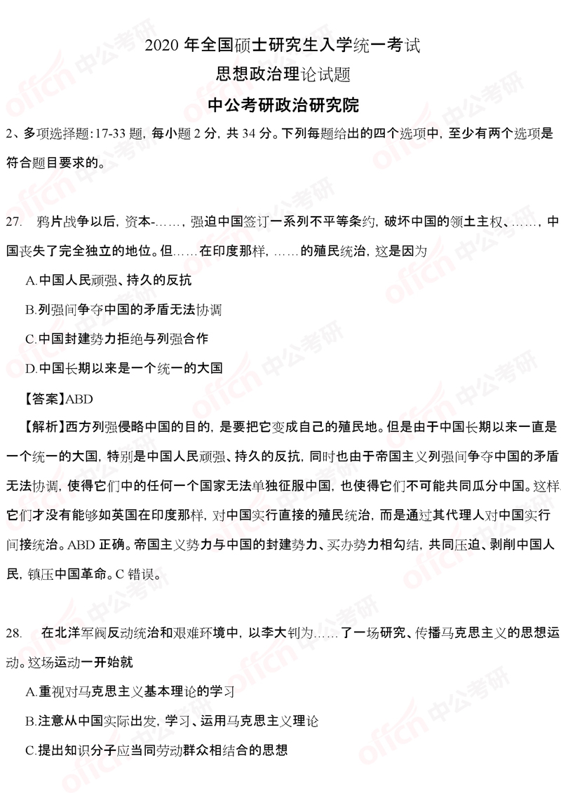 2020考研政治史纲多选题27-29试题及答案解析(中公考研版)