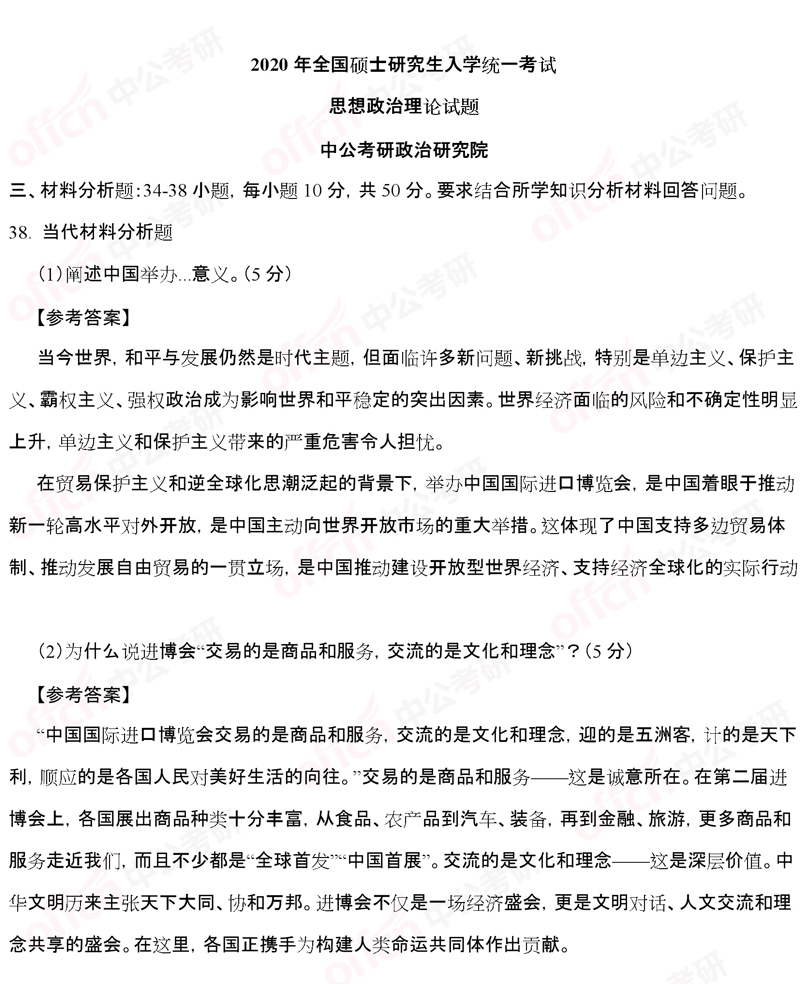 2020考研政治,时政热点分析题38题及答案解析(中公考研版)