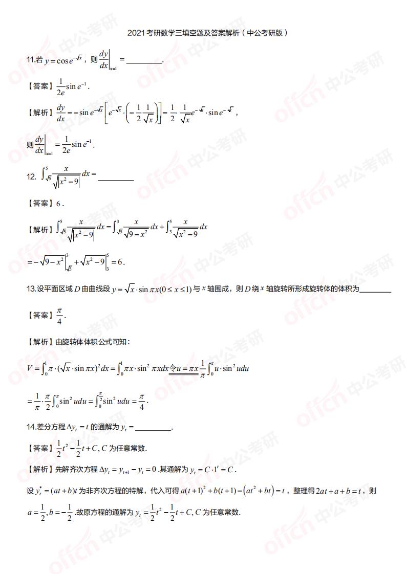 2021年2月26日由招生单位通知考生成绩,申请成绩复核于2月27日至28日期间进行,复试录取工作大约在3至4月进行。中公考研网在考研初试后及时为各位考研考生梳理"2021全国硕士研究生考试考研数学三部分试题及答案"内容,同时中公考研各研究院院长针对2021考研各科目试题变化及难度进行解析》》【2021考研各科试题及参考答案解析汇总】