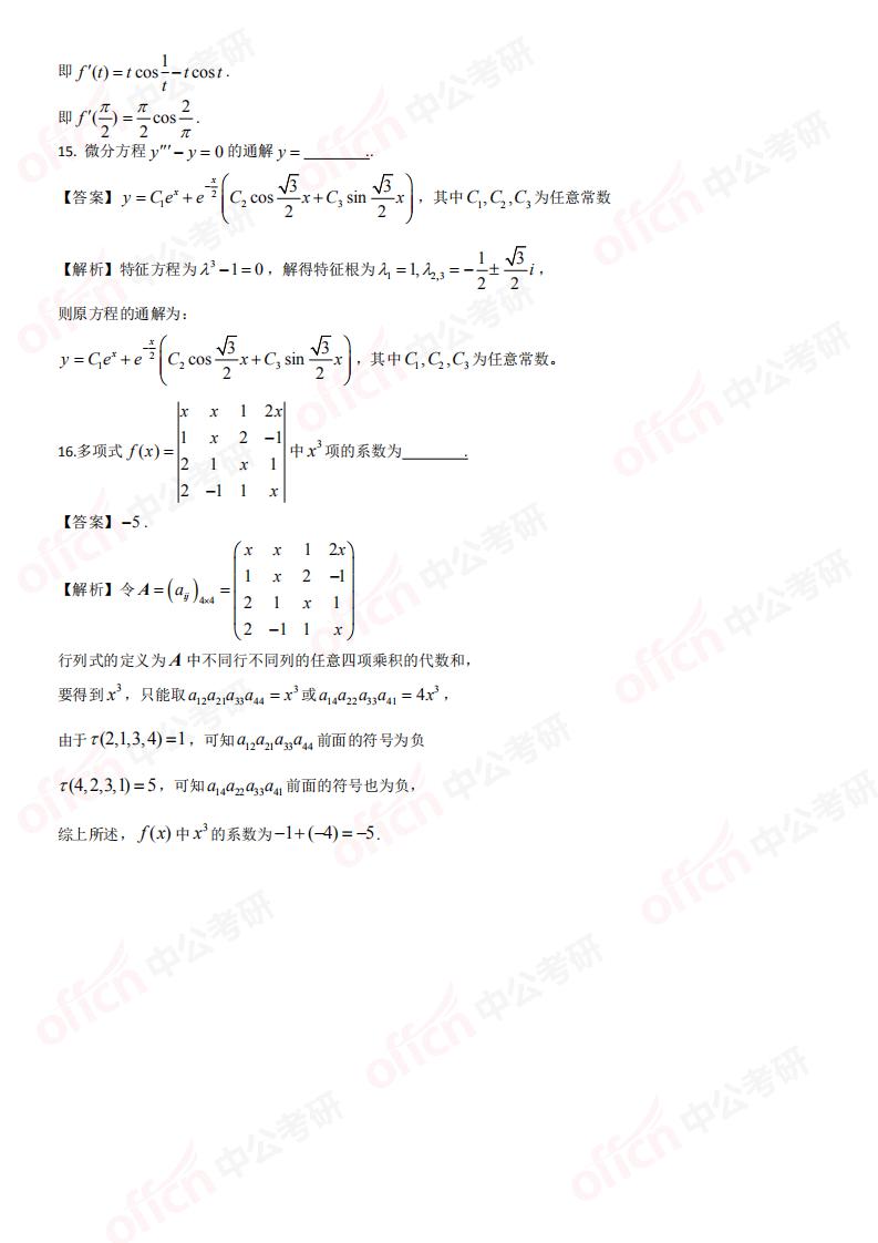 以上是四川考研小编整理的"2021考研数学二填空题试题及答案解析(中公考研版)"内容,2021考研初试成绩查询时间及查询事项广大考生可关注中公考研网,及时获取考研成绩查询信息,帮助大家做好考研初试后准备,从容迎战后续考研复试/调剂工作~