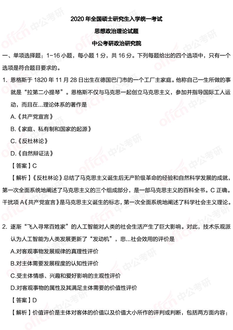 亲爱的各位小可爱们,本文是四川中公考研网小编整理的关于“2020考研政治试卷及解析",的相关资讯信息,供大家参考,希望对你们有所帮助。另外每天都要对自己所学的知识学会“复盘”哦。