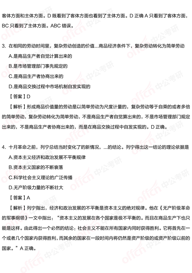 2020考研政治马原单选题1-4试题及答案解析(中公考研版)