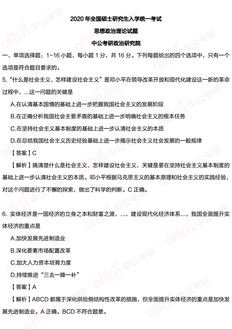亲爱的各位小可爱们,本文是四川中公考研网小编整理的关于“2020考研政治试卷及解析",的相关资讯信息,供大家参考,希望对你们有所帮助。另外每天都要对自己所学的知识学会“复盘”哦。