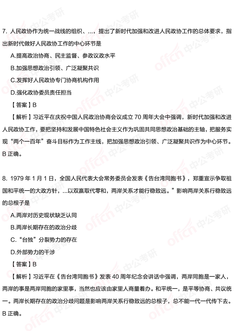 2020考研政治毛中特单选题5-8试题及答案解析(中公考研版)
