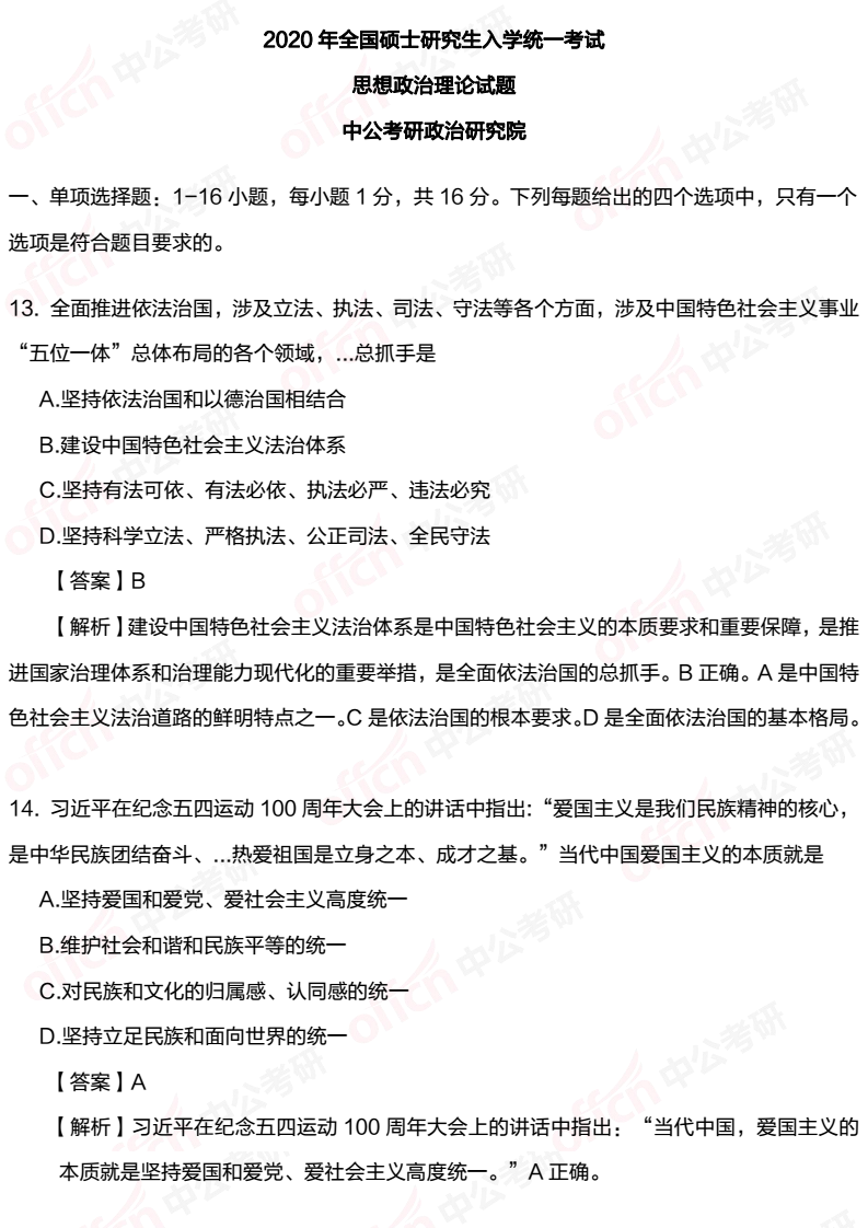 2020考研政治思法单选题13-14试题及答案解析(中公考研版)