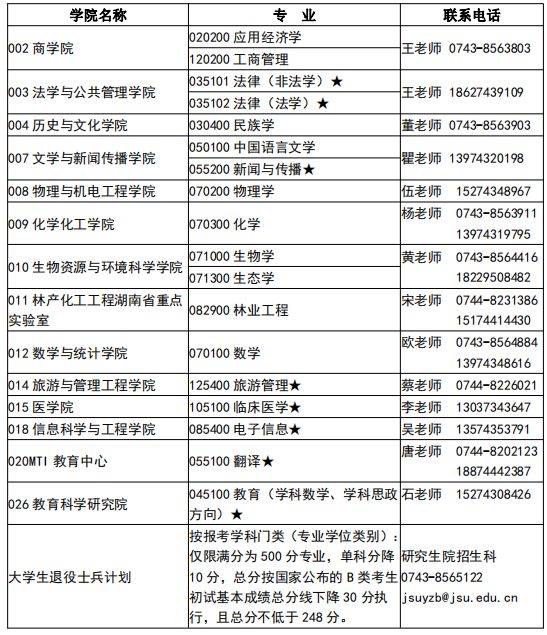 根据教育部公布的《2020年全国硕士研究生招生考试进入复试的初试成绩基本要求》,结合招生计划,我校部分专业还需接受考生调剂。具体接受调剂的专业和名额,届时以中国研究生招生信息网“调剂服务系统”(以下简称“调剂系统”)中公布的缺额信息为准。拟接受调剂的专业和所在学院联系方式如下: