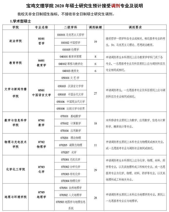 原文标题:宝鸡文理学院2020年硕士研究生预调剂公告