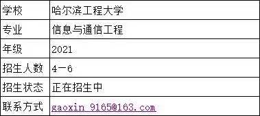 有意向的同学将个人简历发送至:739531372@qq.com,邮件主题为:调剂+姓名+报考专业+报考院校,如:调剂+张三+信息与通信工程+哈尔滨工业大学。