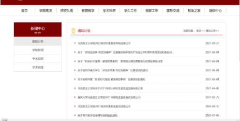 再如,一些小伙伴需要查找重庆大学马克思主义理论专业的复试及调剂信息,如果搜索院校研究生院官网找不到有用信息,那么你可以再尝试搜索学院官网:重庆大学马克思主义学院。
