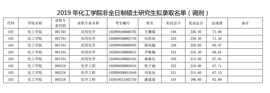 以上是四川中公考研小编为您整理的“南京理工大学2019年化工学院非日制硕士研究生拟录取名单公示(调剂)",预祝每位考生取得好成绩,更多考研常识相关内容尽在四川中公考研报录比频道,中公考研为广大学子推出乐学面授课、VIP一对一等系列备考课程,针对每一个科目要点进行深入的指导分析,欢迎各位考生了解咨询。同时,中公考研一直为大家推出考研直播课堂,足不出户就可以边听课边学习,为大家的考研梦想助力!