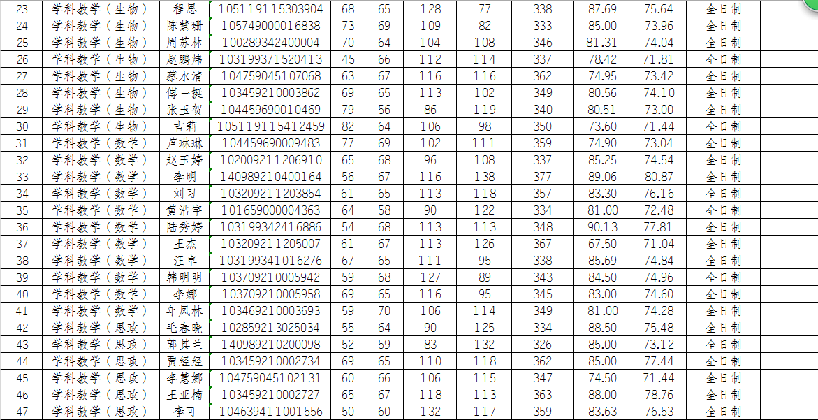 合肥师范学院2019年硕士研究生招生拟录取名单