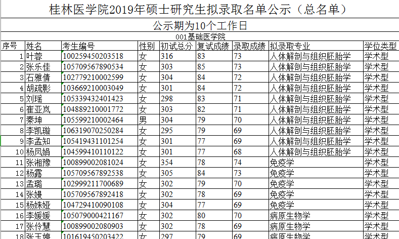 更多名单详见附件【桂林医学院2019年硕士研究生待录取名单公示(总名单)