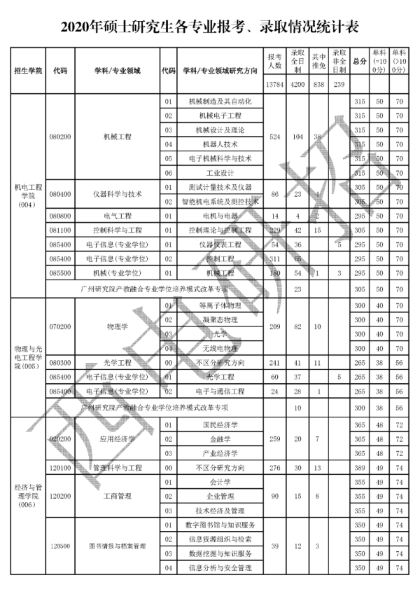 从西安电子科技大学20年硕士研究生报录情况来看:
