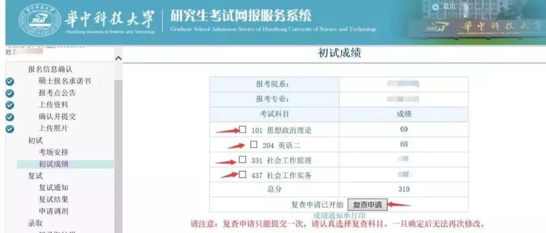 大家填写申请过程中要注意学校是否有复核门数的限制,如华南理工规定每位考生申请复核成绩的科目不超过2门。填写超过2门的,只复核前两门。