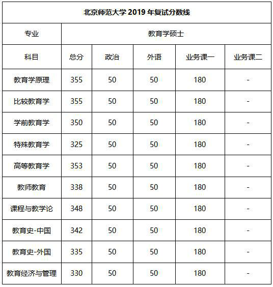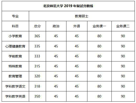 五、北京师范大学 2019 年教育硕士自主划线学科复试分数线