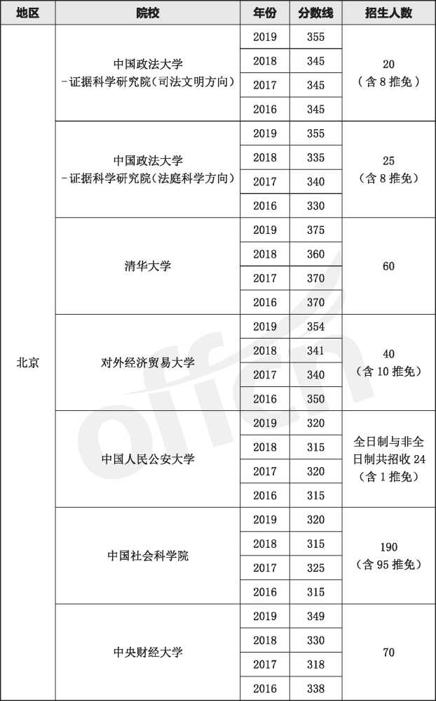 | 北京 | 中国人民大学 | 2019 | 365 | 全日制137 (含65推免) 非全日制96 (含法学法硕) |
