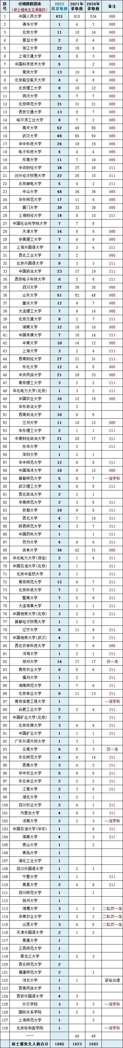 直博推免生共计185名同学。根据人民大学研究生院拟录取名单、各校2022届本科生推免公示名单比对,部分生源高校名单(人数不精准)如下: