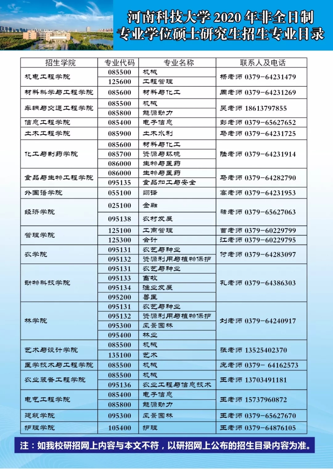 以上是四川中公考研小编为您整理的“河南科技大学2020年硕士研究生招生简章及招生职业目录",预祝每位考生取得好成绩,更多考研常识相关内容尽在四川中公考研招生简章频道,中公考研为广大学子推出乐学面授课、VIP一对一等系列备考课程,针对每一个科目要点进行深入的指导分析,欢迎各位考生了解咨询。同时,中公考研一直为大家推出考研直播课堂,足不出户就可以边听课边学习,为大家的考研梦想助力!