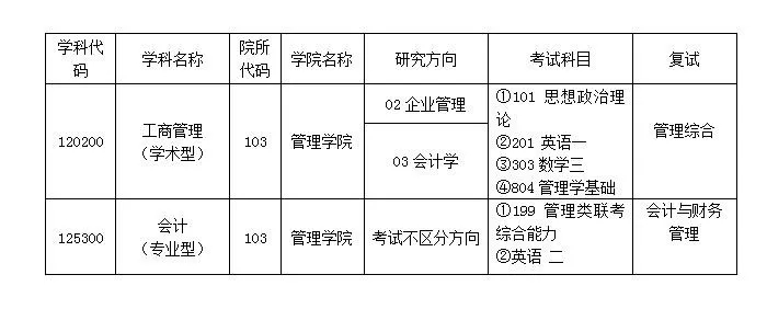 管理学院工商管理学科硕士点下设:企业管理、会计学等研究方向,学制三年。
