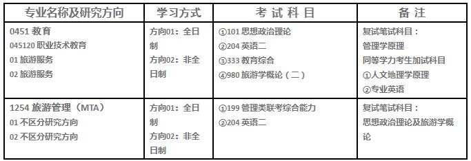 我院2020年共有2个职业学位招收非日制硕士研究生,分别为:职业技术教育(旅游服务)、旅游管理硕士。