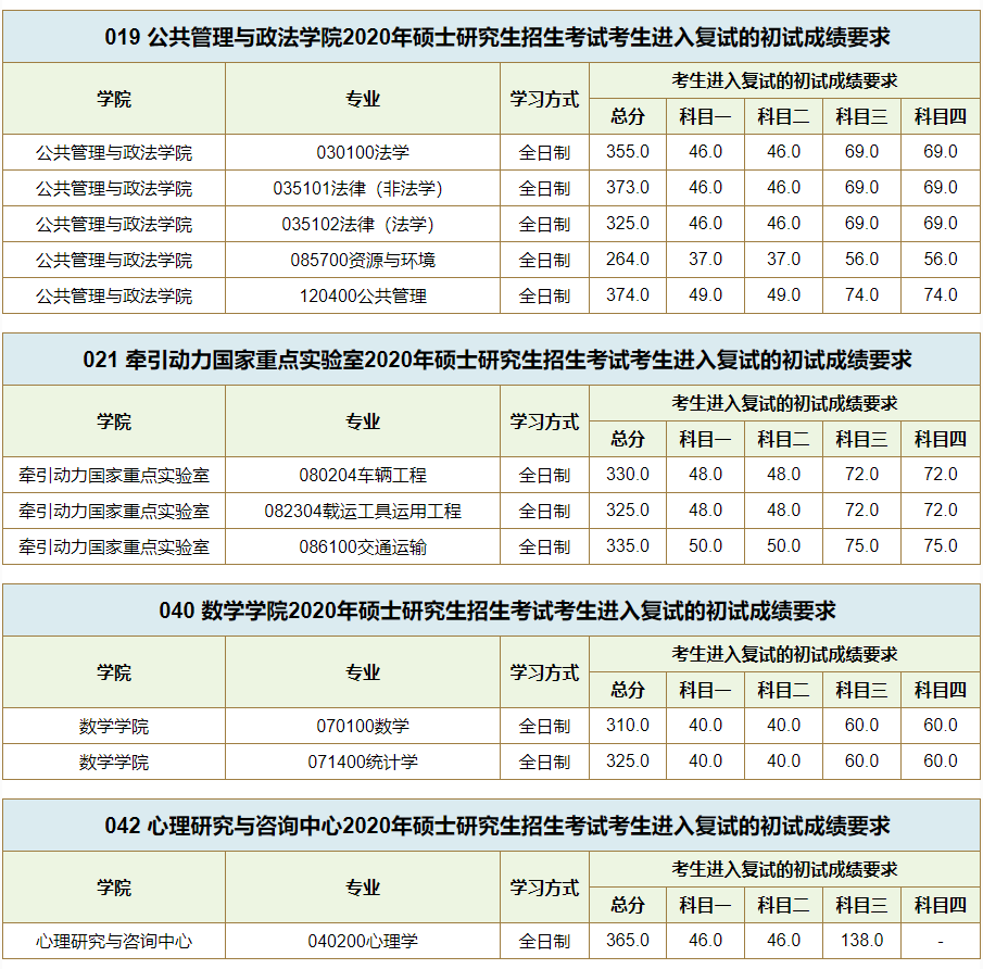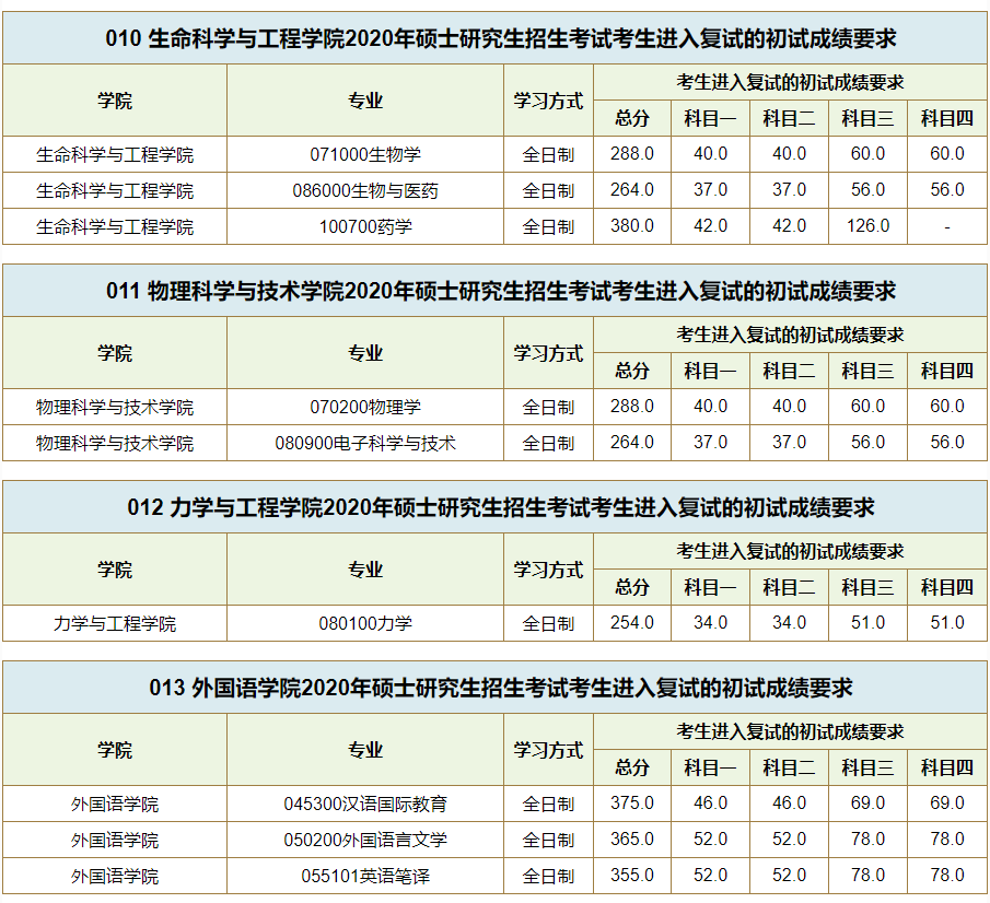 根据教育部有关文件精神,结合我校实际情况,经学校和各招生单位研究生招生工作领导小组审定,我校2020年硕士研究生招生考试各专业考生进入复试的初试成绩要求如下表(陆续更新),请关注本网站发布的最新信息。