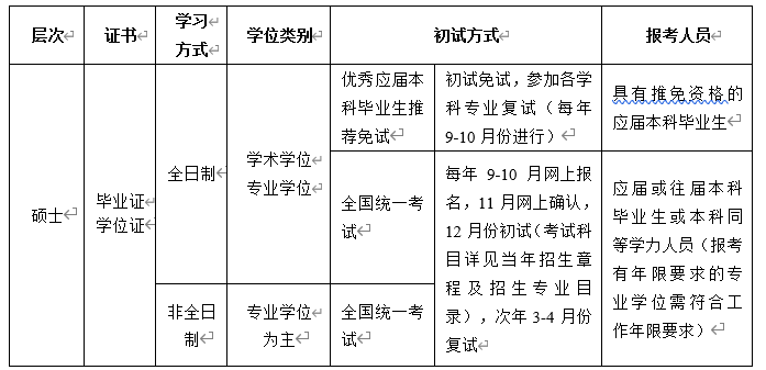 全国硕士研究生招生考试初试方式分为全国统一考试和推荐免试。