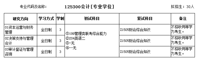 安徽师范大学2020年硕士研究生招生职业目录(会计)