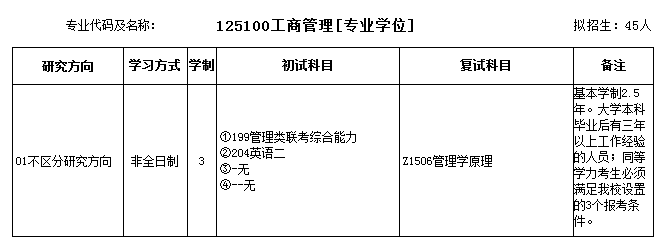 安徽师范大学2020年硕士研究生招生职业目录(非日制工商管理)