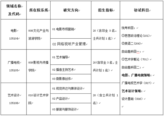 涵盖专业:①电影领域:不限专业。②广播电视领域:不限专业。③艺术设计领域:涵盖美术学和设计学下设相关专业。
