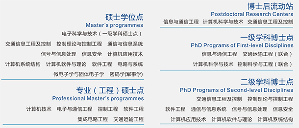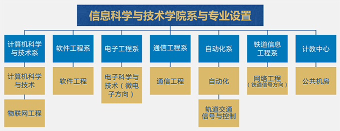 学院下设计算机科学与技术、软件工程、通信工程、自动化、电子工程系、铁道信息工程6个系和面向全校的计算机基础教育中心,8个本科专业和方向,其中通信工程、计算机科学与技术为国家级特色专业,软件工程和自动化为国家卓越工程师教育培养计划专业,同时为实施精英培养,学院还设有茅以升学院信息班、詹天佑学院信息班。
