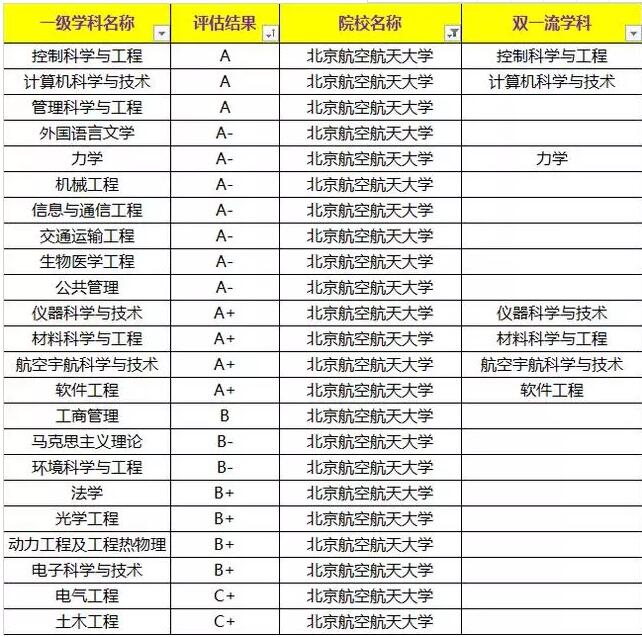 在第四轮教育部学科评估中,航空宇航科学与技术、材料科学与工程、软件工程和仪器科学与技术均获A+评级。