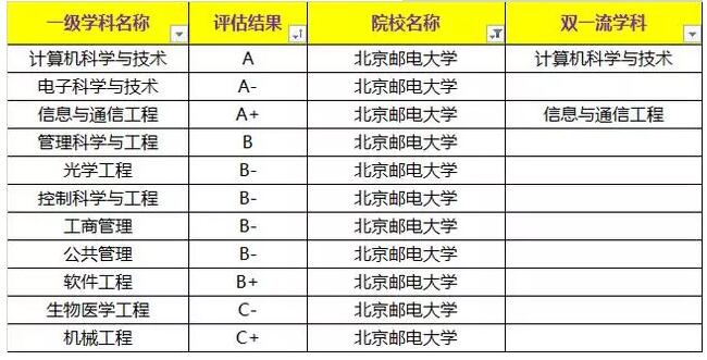 在第四轮学科评估中学校的信息与通信工程、计算机科学与技术以及电子科学与技术三个一级学科进入A类,其中信息与通信工程为A+,计算机科学与技术为A,电子科学与技术为A-。