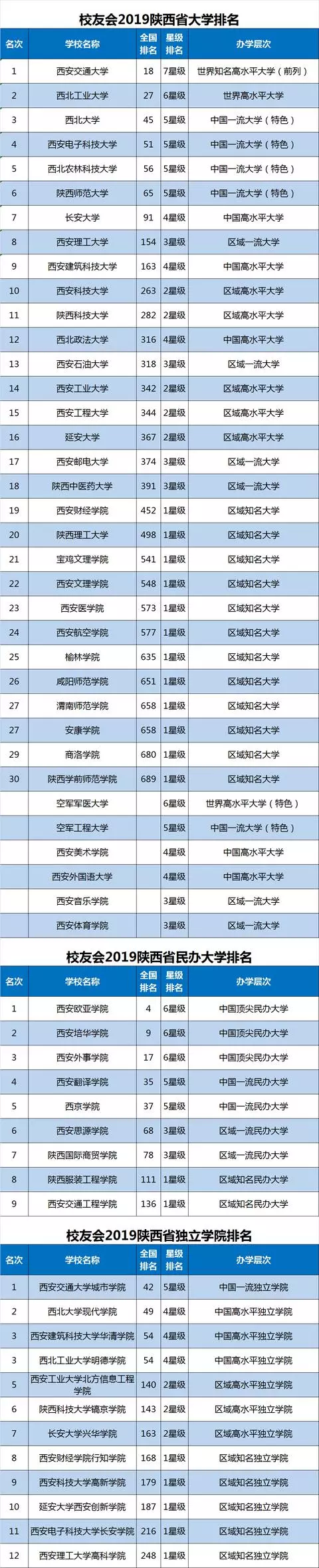 艾瑞深中国校友会网新公布校友会2019中国两岸四地大学排名500强、2019中国大学分档次排名和2019中国各省市区大学排名等榜单。值得关注的是,陕西省共有7所好校跻身2019中国大学排名百强行列,西安交通大学、西北工业大学、西北大学雄居2019陕西省大学排名前3强。