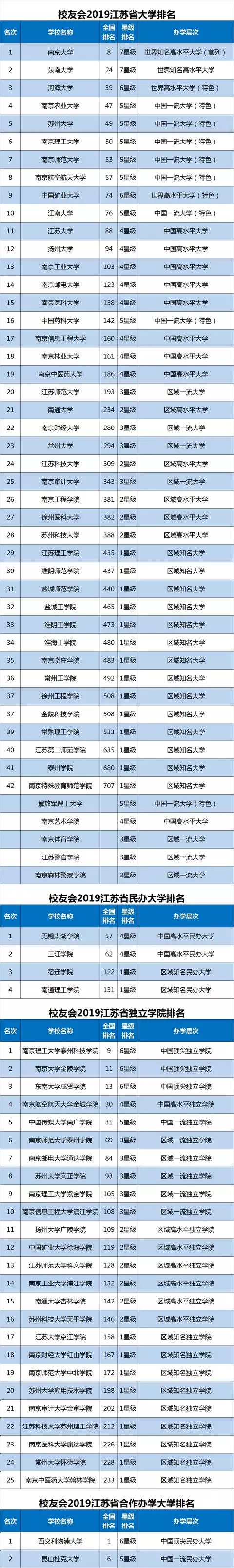 艾瑞深中国校友会网新公布校友会2019中国两岸四地大学排名500强、2019中国大学分档次排名和2019中国各省市区大学排名等榜单。值得关注的是,江苏省共有12所好校跻身2019中国大学排名百强行列,南京大学、东南大学、河海大学雄居2019江苏省大学排名前3强。