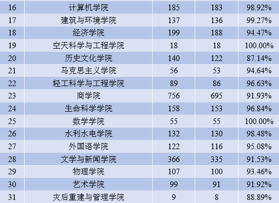 本科、硕士和博士的就业率分别为90.74%、95.22%、94.61%。
