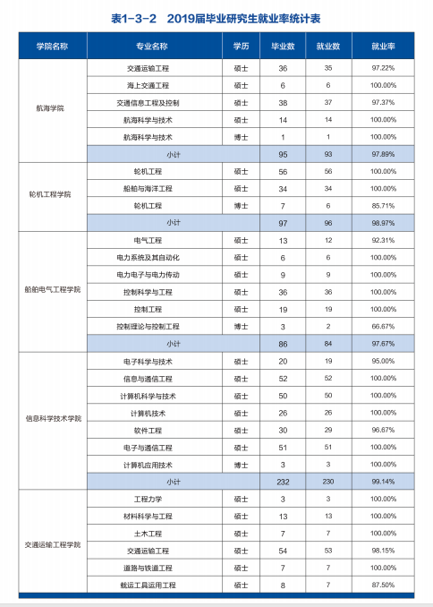 2019年大连海事大学毕业生总计5363人,其中硕士毕业生1353人,占25.23%,硕士研究生具体就业情况信息如下: