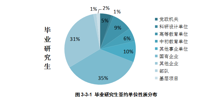 毕业研究生签订就业协议910人,占比47.45%;升学89人,占比4.64%;出国11人,占比0.57%;签劳动合同就业和其他录用形式就业435人,其他流向426人,未就业47人。