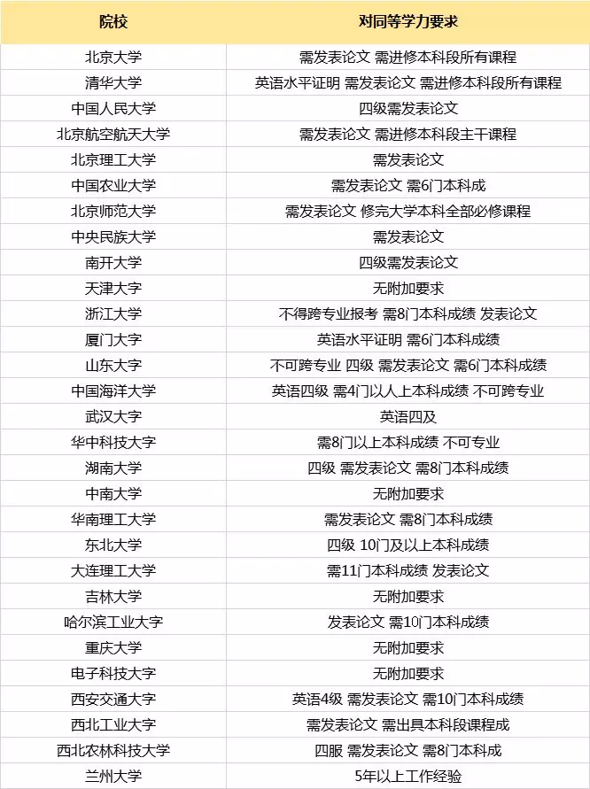 6、招收专科生的985院校:院校名称以及对同等学历要求